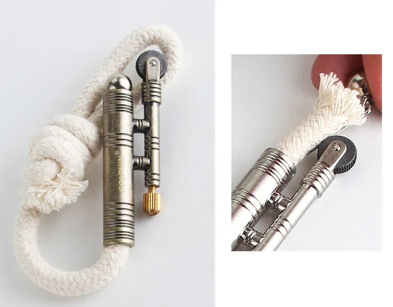 Traditional WWI-style bronze rope lighter with premium flint ignition system.